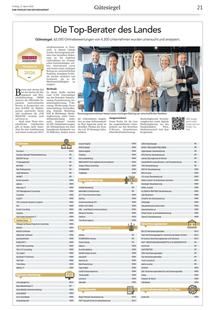 Wenn Du Dich nun in den genannten Anforderungen wieder findest und Teil der Huemer Group sein möchtest, dann sende uns bitte Deine vollständigen Bewerbungsunterlagen (Motivationsschreiben, Lebenslauf und Foto) per Mail an jobs@huemer-group.com, oder über das beistehende Formular auf der Website.
